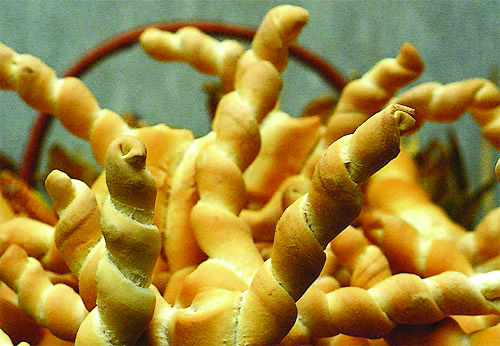 This twisted sourdough from Ferrara first appeared in 1536, when Messer Giglio presented the bread at a dinner party in honour of the Duke of Ferrara. Made with flour, lard, olive oil and malt, the bread is moulded into an elaborate shape of a knotted middle with two twisted breadsticks on either side.
