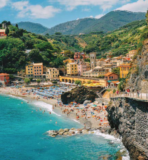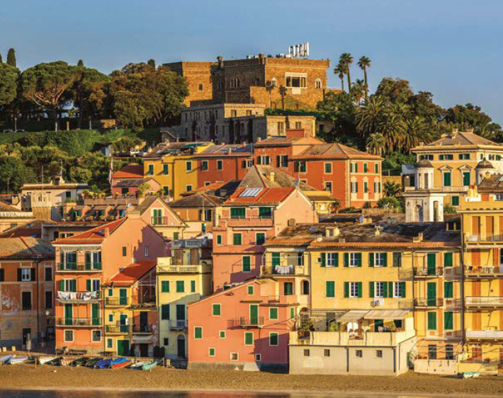 Situated in Italy’s northwest, Liguria is the third smallest Italian region, after Molise and Valle d’Aosta. It borders France to the west, Piedmont to the north and Emilia-Romagna and Tuscany to the east. In the hinterland you’ll find the Ligurian Alps in the west and the Ligurian Apennines to the east. Liguria lies on the Ligurian Sea, with its coastal edge forming the Italian Riviera. The region’s principal source of income is tourism – and this is most obvious on the coast with the presence of chic resorts such as Portofi no, San Remo and the famous Cinque Terre towns. The coastal climate is mild in winter, due to the shelter from the higher ground that sits behind it, with relatively temperate summers.