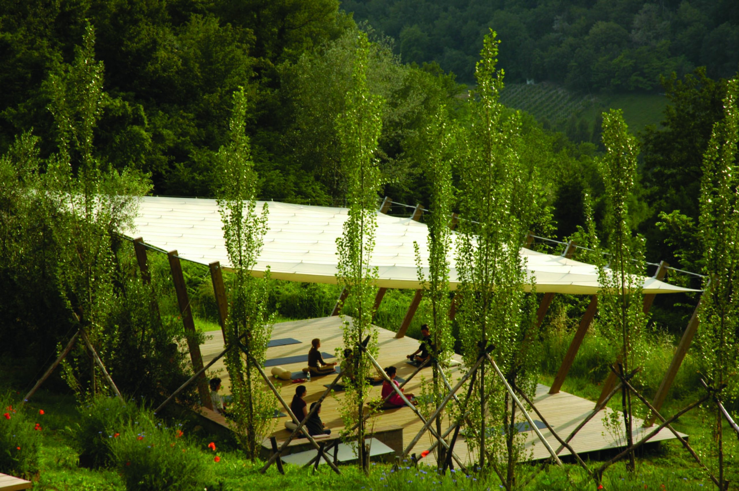 Set near the charming medieval village of Torri in Sabina, this renowned retreat boasts two restored 17th-century buildings overlooking a panorama of fruit trees and olive groves. Rooms are cool and simply furnished, creating the ideal backdrop for slowing down and quietly retreating. An impressive yoga platform sits in the valley with a natural spring and lily pond nearby. Giulia’s thoughtful restoration has created a stunning venue designed to soothe the soul. The atmosphere could not be more serene.