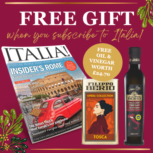 Terms and conditions: Gift is only available to UK 12 month continuous payment orders. The minimum subscription term is 12 months and cannot be refunded. The Oil & Vinegar set will be sent separately to the first issue of Italia! This gift offer is subject to availability and if stock runs out, an alternative gift may be supplied. This offer may be withdrawn at any time. Offer Code: X25ITLWEB. End Date: 29 February 2026