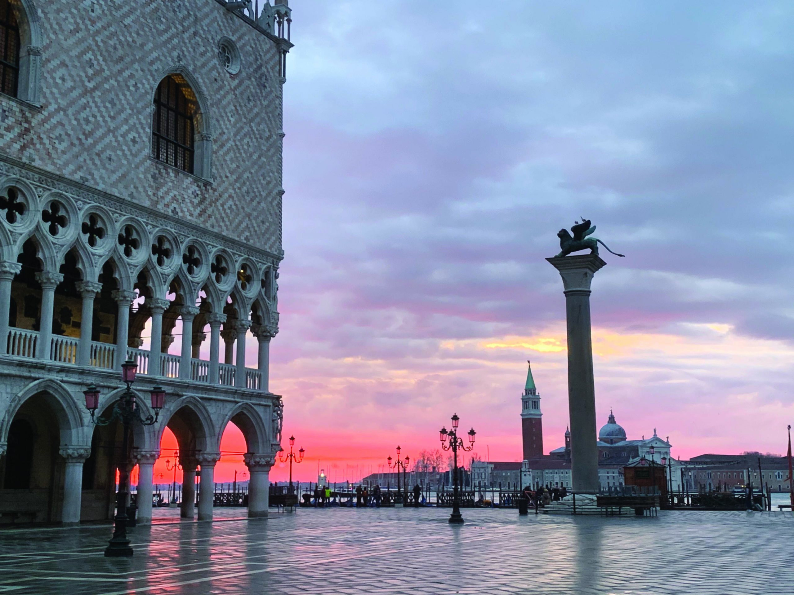 The Grand Canal is a superb introduction to San Marco – and to Venice itself – but this is the most central of the six sestieri and walking inland opens up so many more possibilities. The Piazza (there is only one in Venice) is obviously a destination in its own right. Despite the instant familiarity we might feel on reaching it – this uneven, L-shaped public space seems to be in every guide book and on every poster for Italy – it is worth exploring for the remarkable sequence of buildings of which it is comprised. There is not a single building, decorative detail, or even a single flagpole in Piazza San Marco (and its smaller piazzetta in front of the Doges’ Palace) that doesn’t have both great architectural value and a fascinating history.